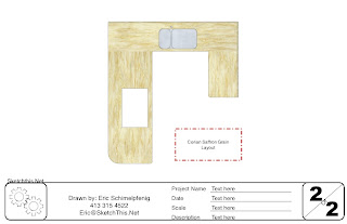 So, while this may seem time consuming, its really not. I can now create a drawing just like this in about 15 minutes or less. Its a great way to show how Corian, and granite seams are going to look, and makes a really professional document for both your customer, and your fabricators. The dimensioned schematic that you see here was created in LayOut, which I will cover in a future post.