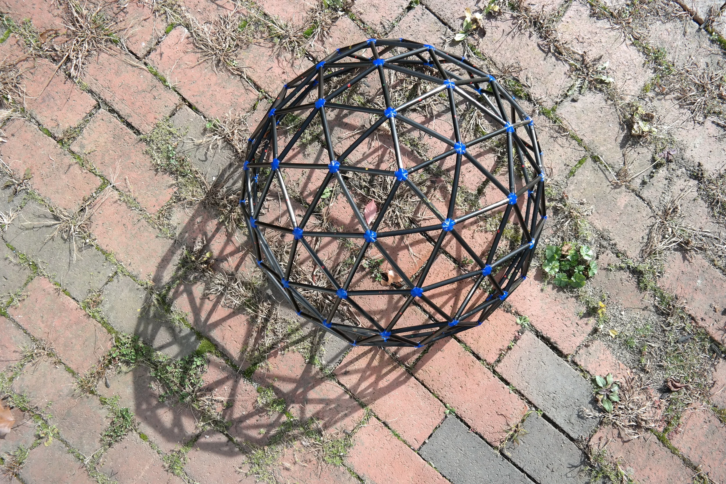 I've been finding that when I try to explain how one of these geodomes work, that it's best to have one. I decided to 3D print one. I created the hubs in SketchUp and printed them on a MakerBot. I used black bar straws for the struts. I'll be posting up a full how-to soon. For now, check out the pictures!